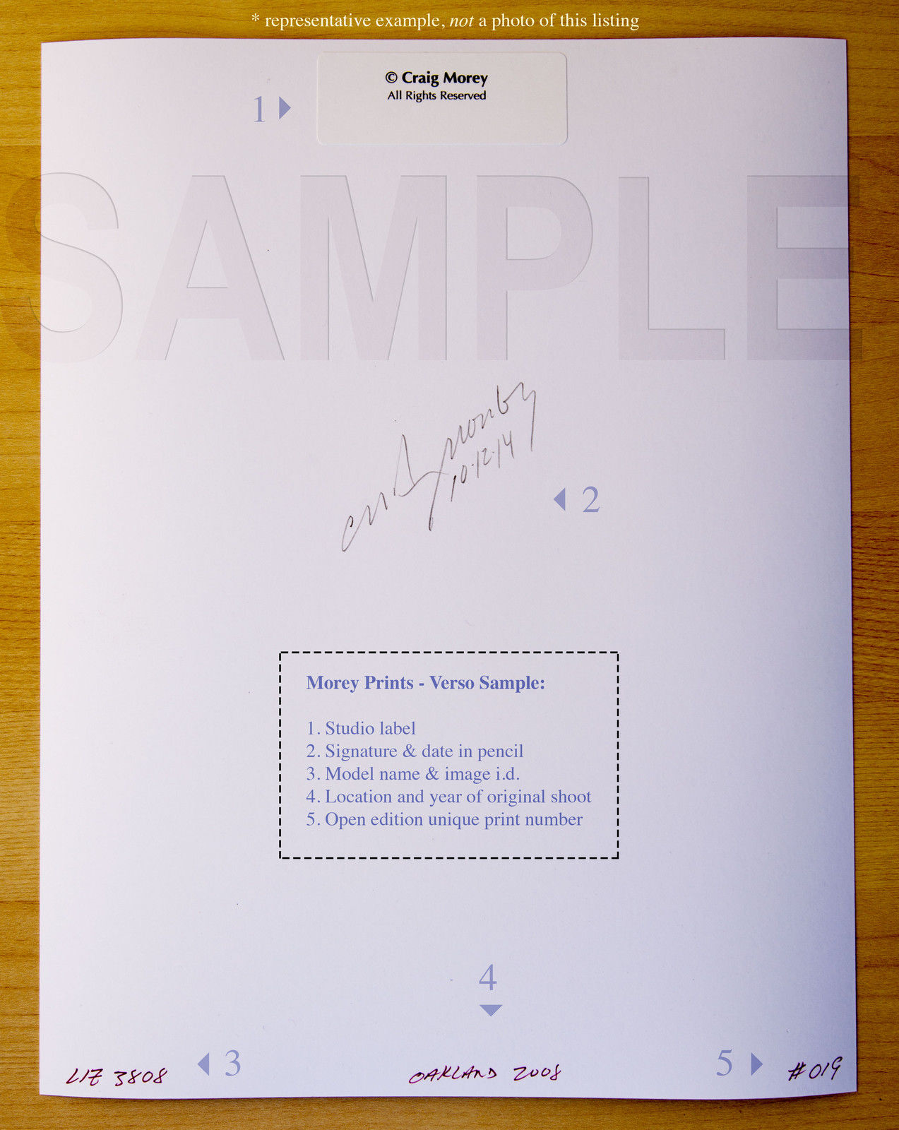 Specifications: This is a signed and numbered open edition 8.5×11 original exhibition print by Craig Morey. All prints are made with white borders. Artist’s signature appears in the lower right front, and the image details, studio label, and model name appear on back. Also written on the back is a unique edition number for each print. (Note: artist logo and copyright info do not appear on the prints, only on the web versions) All prints are custom made to order in the photographer’s studio.