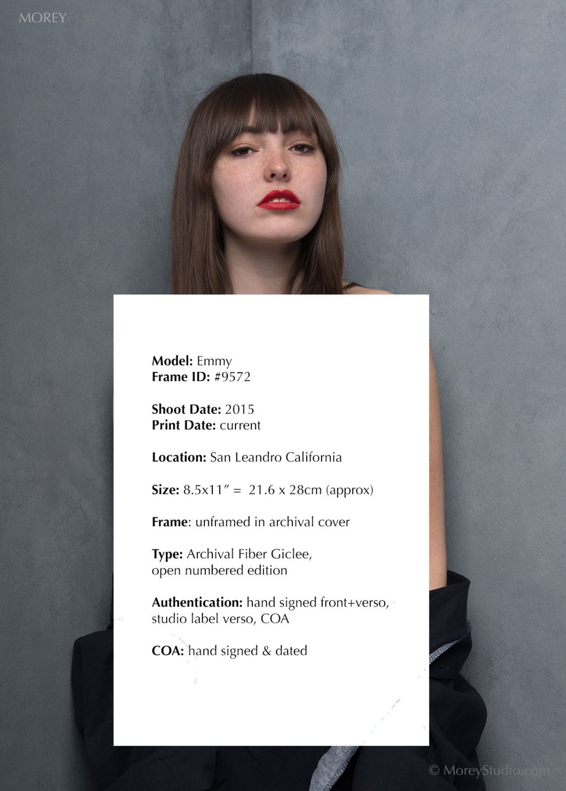 Specifications: This is a signed and numbered open edition 8.5×11 original exhibition print by Craig Morey. All prints are made with white borders, to maintain material quality and reduce handling damage. Artist’s signature appears in the lower right front, and the image details, studio label, and model name appear on back. Also written on the back is a unique edition number for each print.  (Note: artist logo and copyright info do not appear on the prints, only on the web versions)  All prints are custom made to order in the photographer’s studio.
