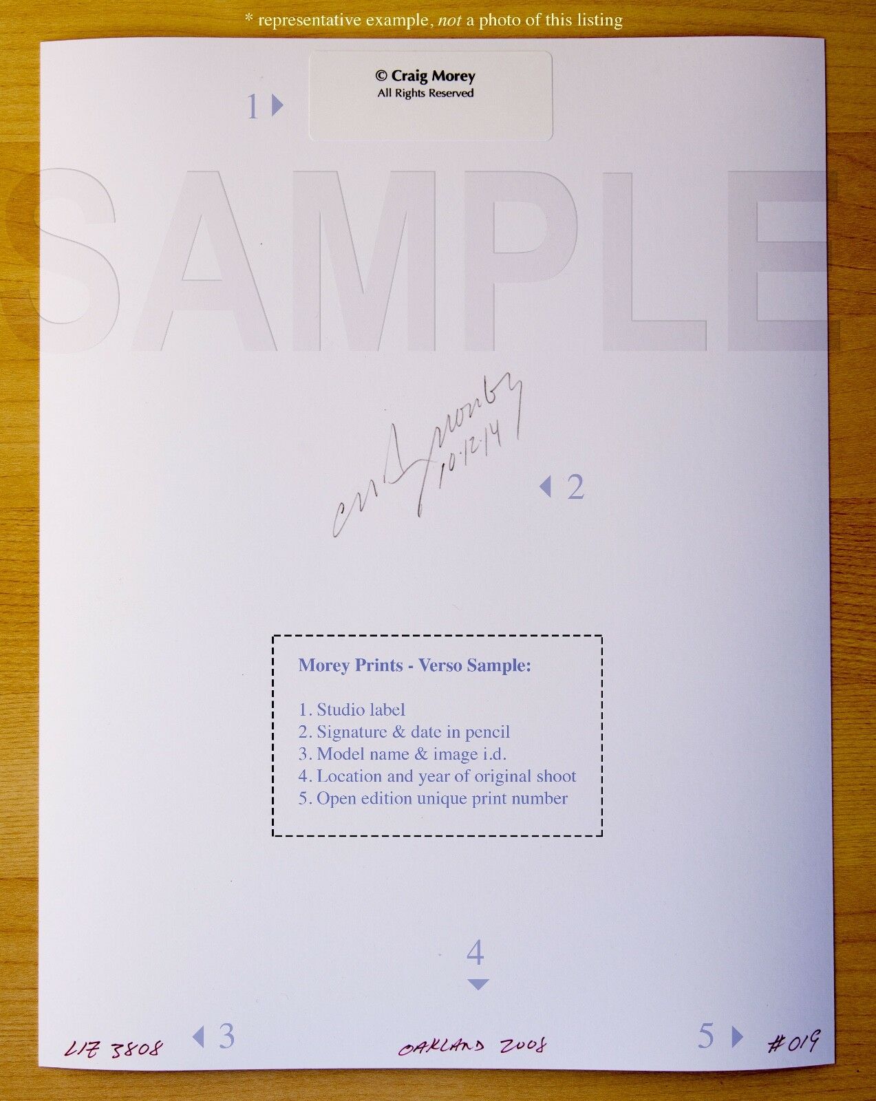 Specifications: This is a signed and numbered open edition 8.5×11 original exhibition print by Craig Morey. All prints are made with white borders. Artist’s signature appears in the lower right front, and the image details, studio label, and model name are written on back. Also written on the back is a unique edition number for each print. (Note: artist logo and copyright info do not appear on the prints, only on the web versions) All prints are custom made in the artist’s studio.